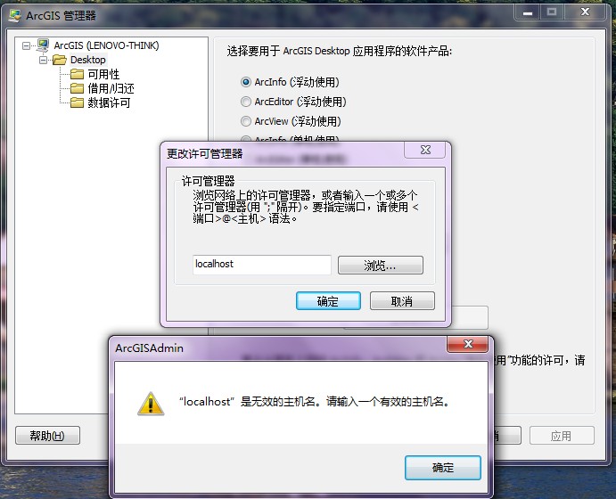 不好意思,乱七八糟的。 我的电脑系统是XP的,我也是按照http://bbs.hxland.com/thread-7448712-1-1.html安装GIS10的,安装时到也遇到了同样的问题。我的方法是 在安装desktop最后一步也就是遇到localhos是无效主机名时,我先不管,直接叉掉,等安装manager之后,打开注册表编辑器,依次展开到HKEY_LOCAL_MACHINE\SOFTWARE\ESRI\License10.0,将LICENSE_SERVER那一项改成@localhost。最后按照安装步骤依次修改就可以了,不知楼主电脑的系统是否可行,楼主可以试试。 |