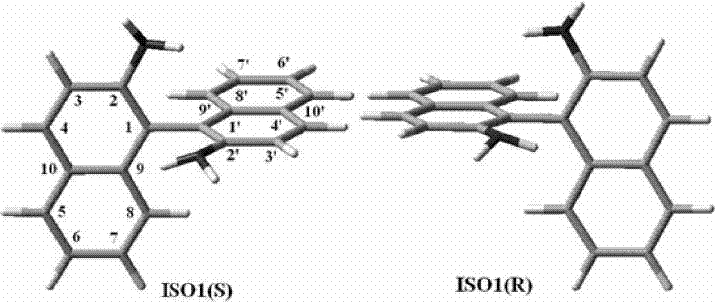 本人想在chemdraw中画出联萘胺的对映体的结构,然后好对它进行优化计算,但是确不知怎么画出联萘胺的对映体,下图是别人已经计算好的联萘胺结构,请不吝赐教!!