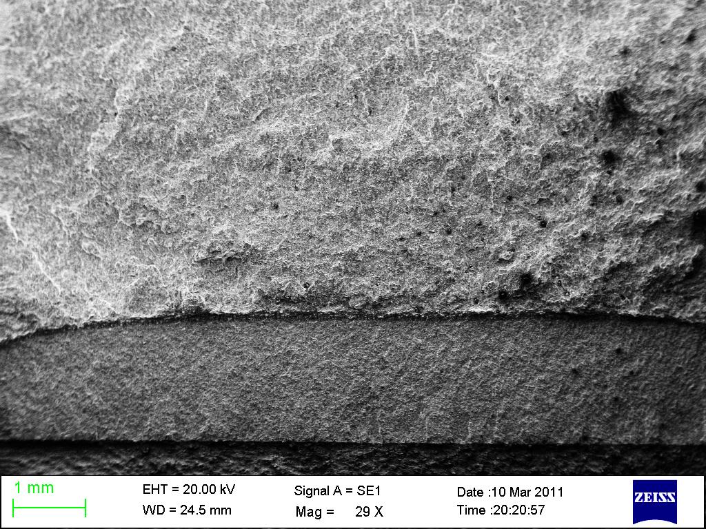 请教如何用SEM观察钢解理断口, 找到起裂点的位置? 都是断裂韧性试样的断口,有的在低倍,几十倍下可以从放射状的花样上判断起裂点,但是在初步判断的位置上放到到几百倍就难以判断具体哪个位置是起裂点了。看上去觉得每个位置上的图像都很重复,觉得有好几处局部位置都可能是起裂点。 有的断口,因为比较平坦,没有明显放射状痕迹,在几十倍低倍数下就都无法判断起裂点。 请问各位有经验的同学,如何才能找到起裂位置啊? 十分感谢! |