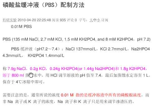 洗细胞的PBS缓冲液0.1M,PH=7.4怎么配制