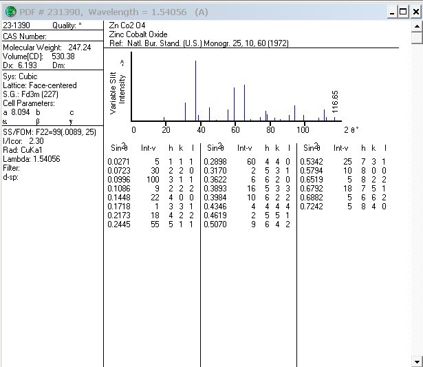 【求助】哪位可提供尖晶石ZnCo2O4 标准XRD谱图数据?