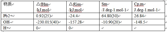 我想查一下水溶液中离子(Pb2+,OH-,H+等)的热力学参数(焓、熵、吉布斯自由能等),哪位大侠知道从哪查! 一般热力学数据手册,兰氏化学手册里好像都找不到。 |