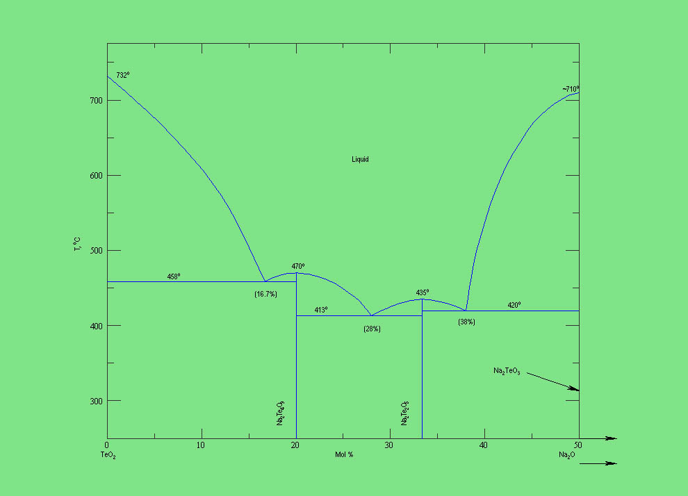 与TeO2有关的玻璃三相图,TeO2、ZnO、Na2O等