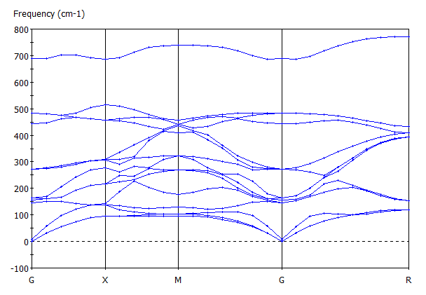 按照您的提示,我计算了一下。输入文件和结果: *************************************** SYSTEM=BaTiO3_phonon PREC=ACCURATE ISTART=0 ICHARG=2 ENCUT=500 EDIFF=1E-07 ISMEAR=-5 SIGMA=0.20 NSW=100 IBRION=5 ISIF=3 NFREE=2 POTIM=0.01 LWAVE=.FALSE. LCHARG=.FALSE. *************************************** Automatic mesh 0 Monkhorst-pack 7 7 7 0 0 0 *************************************** BaTiO3_phonon 4.04 1.00 0.00 0.00 0.00 1.00 0.00 0.00 0.00 1.00 3 1 1 Selective Direct 0.00 0.50 0.50 F F T 0.50 0.00 0.50 F F T 0.50 0.50 0.00 F F T 0.50 0.50 0.50 F F T 0.00 0.00 0.00 F F T *************************************** *************************************** Eigenvectors and eigenvalues of the dynamical matrix ---------------------------------------------------- 1 f = 16.339658 THz 102.665101 2PiTHz 545.032319 cm-1 67.575419 meV X Y Z dx dy dz 0.000000 2.020000 2.020000 0 0 -0.810971 2.020000 0.000000 2.020000 0 0 -0.255736 2.020000 2.020000 0.000000 0 0 0.412193 2.020000 2.020000 2.020000 0 0 0.326851 0.000000 0.000000 0.000000 0 0 0.013817 2 f = 11.622032 THz 73.023380 2PiTHz 387.669245 cm-1 48.064878 meV X Y Z dx dy dz 0.000000 2.020000 2.020000 0 0 0.462840 2.020000 0.000000 2.020000 0 0 -0.823027 2.020000 2.020000 0.000000 0 0 0.306192 2.020000 2.020000 2.020000 0 0 0.116969 0.000000 0.000000 0.000000 0 0 0.031148 3 f = 5.897317 THz 37.053934 2PiTHz 196.713306 cm-1 24.389350 meV X Y Z dx dy dz 0.000000 2.020000 2.020000 0 0 -0.272114 2.020000 0.000000 2.020000 0 0 -0.333826 2.020000 2.020000 0.000000 0 0 -0.354800 2.020000 2.020000 2.020000 0 0 -0.516373 0.000000 0.000000 0.000000 0 0 0.649608 4 f/i= 0.753578 THz 4.734869 2PiTHz 25.136649 cm-1 3.116548 meV X Y Z dx dy dz 0.000000 2.020000 2.020000 0 0 0.225961 2.020000 0.000000 2.020000 0 0 0.312941 2.020000 2.020000 0.000000 0 0 0.245035 2.020000 2.020000 2.020000 0 0 0.464423 0.000000 0.000000 0.000000 0 0 0.758471 5 f/i= 11.562640 THz 72.650207 2PiTHz 385.688129 cm-1 47.819251 meV X Y Z dx dy dz 0.000000 2.020000 2.020000 0 0 -0.054783 2.020000 0.000000 2.020000 0 0 -0.218754 2.020000 2.020000 0.000000 0 0 -0.741902 2.020000 2.020000 2.020000 0 0 0.630204 0.000000 0.000000 0.000000 0 0 -0.039623 *********************************** 第四个看做0吗? 最后一个是虚频,但是还是那个问题,最上面两个O的唯一不一样啊~~ 怎么解决呢? [ Last edited by byin on 2011-3-24 at 23:54 ] |