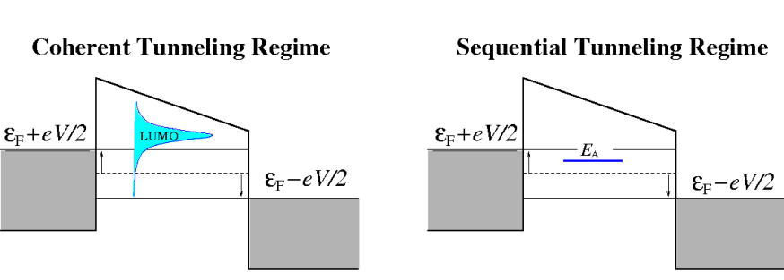一个是coherent tunneling regime 一个是sequential tunneling regime