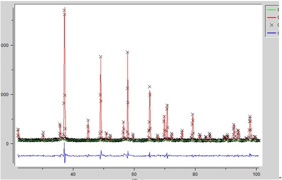 答:从差谱可以看出,晶胞参数精修的不是很正确,原因是可能零点漂移,或者峰形函数表达的不正确!