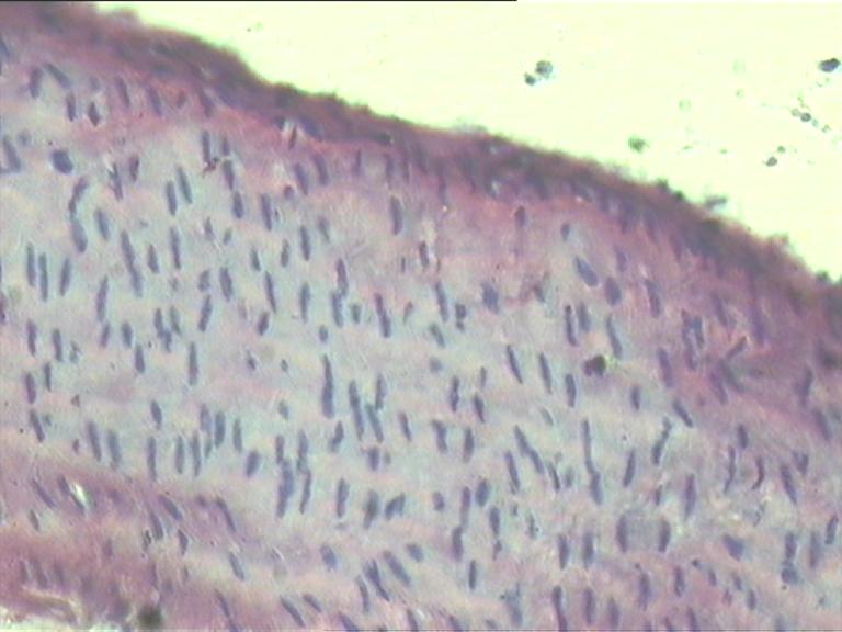 附实验:高脂饮食喂养大鼠,然后解剖主动脉弓做石蜡切片,HE染色。