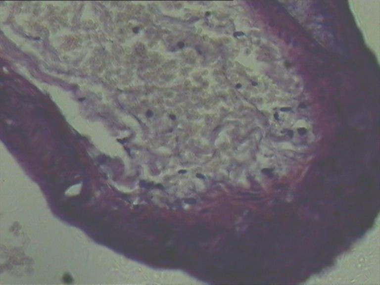 以下为我做的大鼠主动脉弓切片,跟教学用的片子有些出入,不知这些片子是什么情况,求能者分析,谢啦!~
