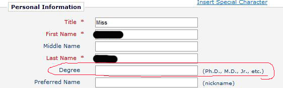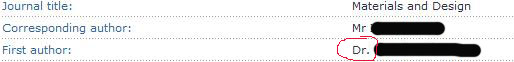 最近投了Elsevier旗下的一个杂志,被录用后返回一个网址,是Track your article,但是我发现返回的信息中自己的学位怎么变成了Dr. ×××(本人是硕士在读),自己又看了一下自己的账号里的change details,明明只写了一个title:Miss,并没有写学位,请问 这种情况该怎么办?对学校检索文章有影响吗?