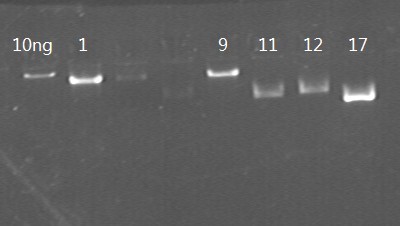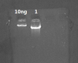 藻类全基因组DNA粗提取后进行电泳,想看看到底有没有提到DNA。之前测得 A280 = 0.467 A260 = 0.949 A230 = 0.373 A260/ A280 = 2.03 A260/ A230 = 2.55 浓度:C = 47.4ng/µL 1%琼脂糖凝胶电泳,结果电泳Marker跑出来了,但是未看到我所提的DNA条带,那是什么原因? 求解!!! |