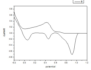 如果是如此,你应先从正向负(电位)扫描,即先沉积,这是出现的一支曲线类似与上图的上支线;然后回扫,即溶出,将出现溶出峰,溶出峰的个数则与体系相关,此时出现的类似上图的下支线。