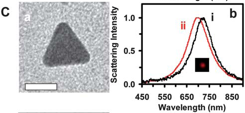 多谢以前也看过一些暗场显微镜结合光谱学观察单个纳米金吸收光谱的,但是没有注意到三棱柱形的情况,对我很有帮助。再问一下问题,三棱柱的话也应该有两个吸收峰吧?也就是说450nm左右的吸收峰应该有三棱柱的 ...