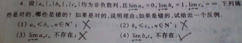 这个和上次差不都吧,bn代表有界数列(收敛),cn代表发散数列。相乘应该是无穷大,故不存在。