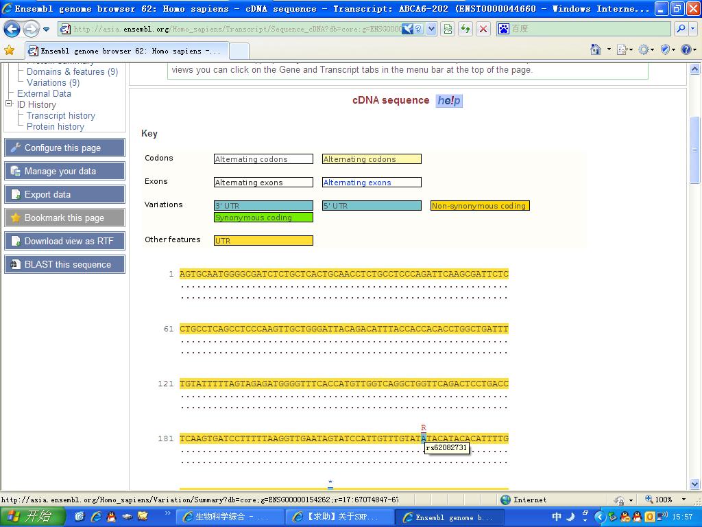 近日,老师让我整理某个基因上已发现的全部SNP位点(通过数据库),包括RS号,在染色体上的位置,在mRNA上的位置,以及序列标注等。请问用哪个数据库最方便,该怎么查找,谢谢