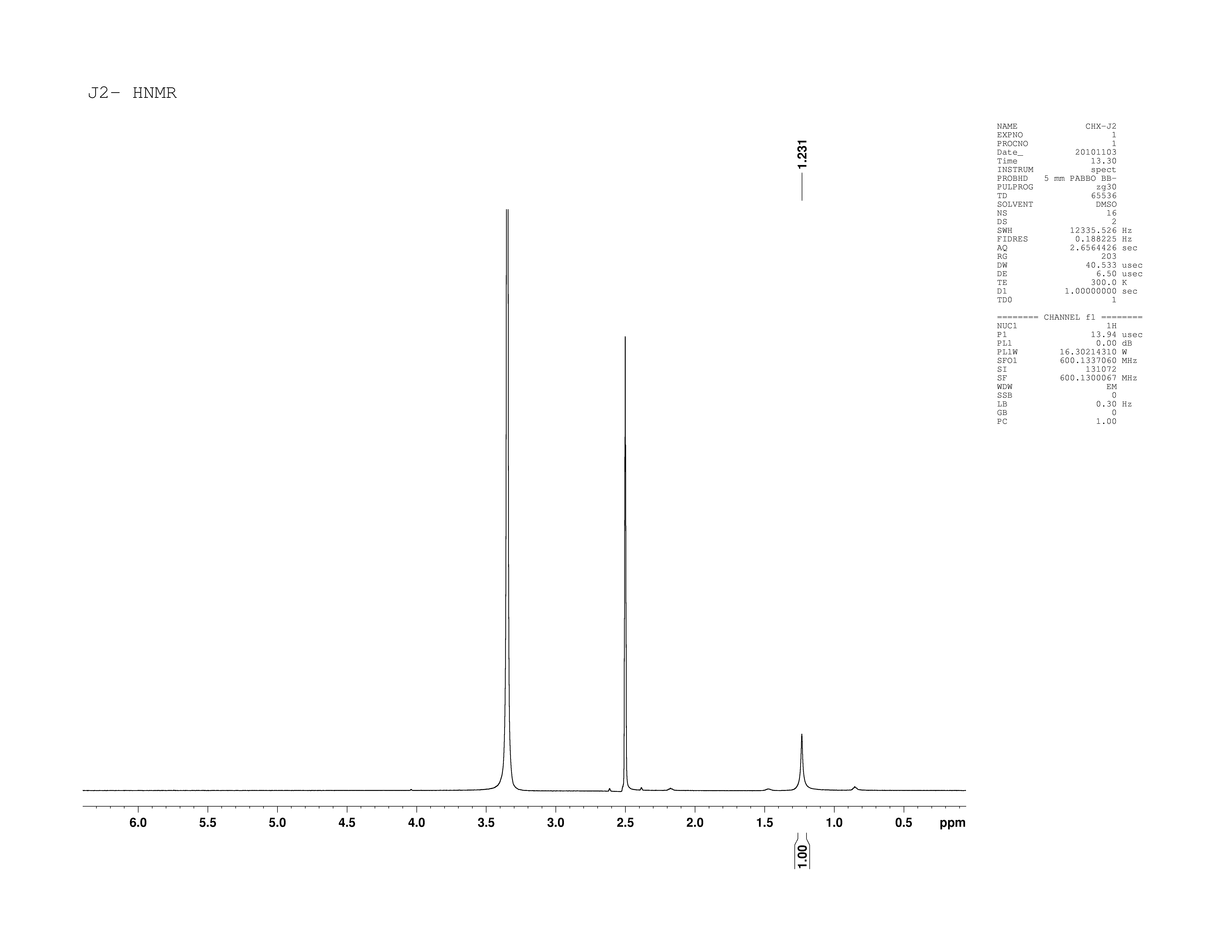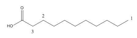我们能从H谱低于溶媒和水峰的的0.85PPm,1.25PPm,1.45PPm,以及2.18PPm出峰位置分析 这个化合物是一个很普通脂肪莲烃 如同下记结构