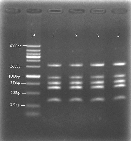 出现5条带,还都很明显,这个引物是我之前用其他物种的引物P出来的片段设计的,分析了这段引物在两端都能扩增,就用了一下,居然出现5条带,1.6kb是我需要的应该