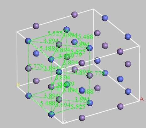 http://muchong.com/bbs/viewthread.php?tid=2937114 上述网址是前些天写的一个请教老师关于超交换常数计算的帖子,里面提到双钙钛矿的La2NiFeO6中Fe-Ni交换常数的估算; 里面提到Ni或Fe都是6配位,昨天画了一个图,发现每化学单元,也就是每fu,交换作用确实是6个;如图,为La2NiMnO6,示意图,La和O原子都略去,仅保留Ni和Mn,每一条绿线表示一个交换作用;该晶胞包含两个fu,然后中心原子包含六条绿线,上下两个面各包含四条,但是由于是上下两个面平分,因此要除以2;另外四条边一共有8条绿线,但是四条边均为四个晶胞均分,因此要除以4;因此,该晶胞中一共是6+8/2+8/4=12个交换作用,该晶胞含有两个fu,因此,每个fu有6个交换作用。 |