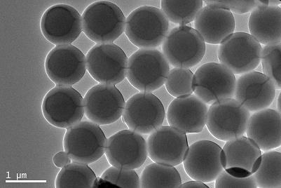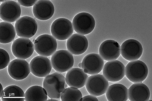 做的是PSt外包覆无机材料,大家看看这个TEM图中阴影部分应该是什么呢?
