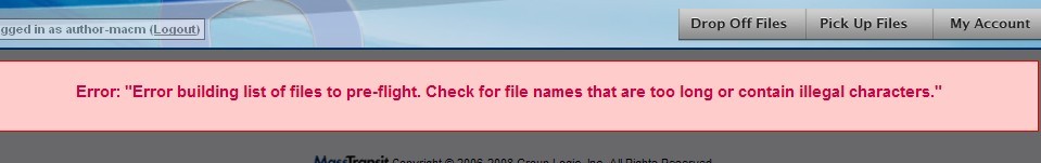 Error: "Error building list of files to pre-flight. Check for file names that are too long or contain illegal characters." 是怎么回事啊 |
