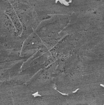这个是镁硅合金的铸态扫描照片,放大了500倍,图中黑色树枝晶是Mg2Si相,我是在实验室做的熔炼试验。用苦味酸做的深腐蚀,在光学显微镜下看不到这些缺陷,但是在扫描下就看到了。