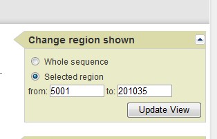 在查找到的基因序列页面右上方标明了该基因在染色体所处的位置,有两个可改写的文本框,可以通过改变文本框里的数字来找到你所需要的基因序列。例如前推或者后推若干个碱基