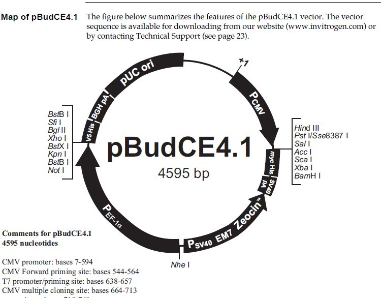 求invitrogen的双表达载体 pbudce4.1 Catalog no. v532-20