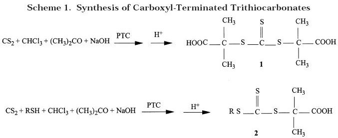 各位,下面图片是附件里那篇文章中关于RAFT试剂合成的节选,我现在有个疑问,RAFT试剂1的合成反应中反应物二硫化碳只有两个硫原子,怎么到了产物(RAFT试剂1)就变成了含三个硫原子的化合物了呢?元素不守恒阿?