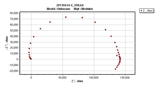 我用四电极体系测膜的交流阻抗谱,电极是不锈钢线。得到的图如下所示,高频端怎么有一部分在第二象限?低频端向下弯又是怎么回事?如果是电感造成的话,电感又是哪来的呢?等待高手帮忙