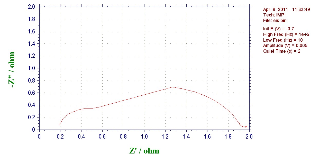 请各位帮忙看下这个EIS图,我是在活性炭表面镀金属氧化物,这个图能说明镀上了吗?还有,我觉得我用涂覆的方法直接将买来的AC涂到基片上,附着力很差,该怎么解决呢?AC在用之前是否需要预处理,谢谢帮忙