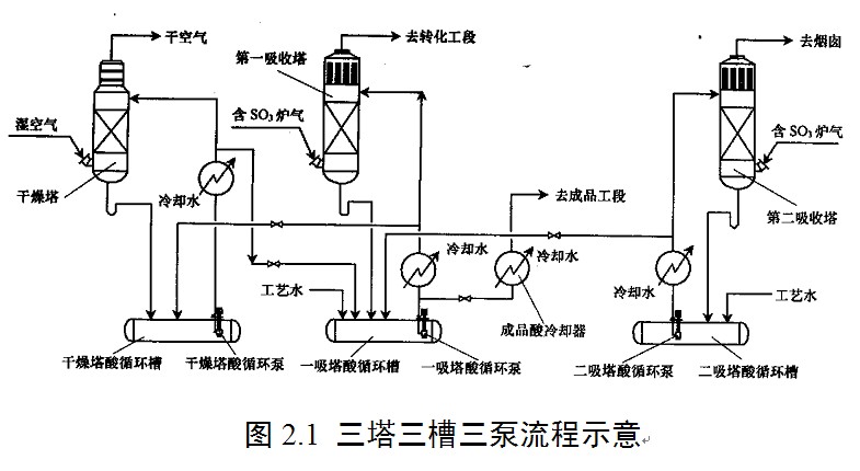 我有个硫酸干吸系统的工艺流程图,是三塔三槽三泵流程,可是我看不懂物料的走向、每个设备的具体作用,谁有这个工艺流程的说明啊?就像化工工艺学教材讲解工艺流程那样的。