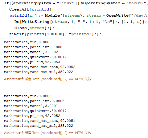楼主关心的主要是计算速度问题,光说没用,有例子才更有说服力 Julia语言官网上有Matlab和Mathematica的最新测试,https://github.com/JuliaLang/julia/tree/master/test/perf/micro, Windows下Matlab只有一项比Mathematica快,Linux下Matlab没有一个比Mathematica快 http://tieba.baidu.com/p/2603766662 Matlab: Mathematica: |