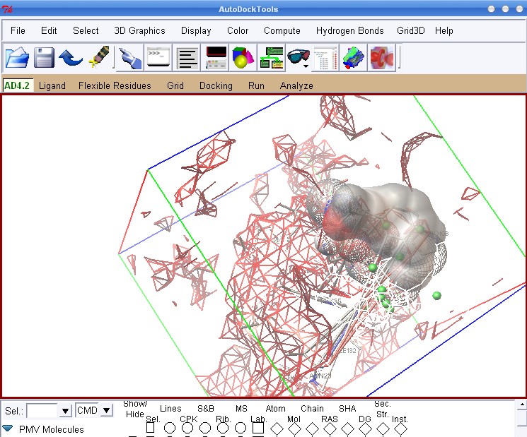 我是菜鸟,不明白你的对接结果中小分子怎么跑出来了的,我是按照教程来的就没出现过这种情况,虽然有时对接的结果不是很理想,但总归还是在结合位点~