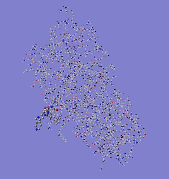 请教各位高手,我按照手册对接后,发现配体不能和酶对接上,只是在酶的表面。为何我分析后总是得不到对接的结果呢?试了半个月了百度半个月了,但总是对接不上。郁闷。现在我上传几张图片,