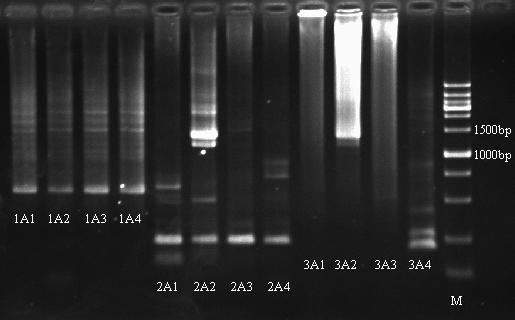 下面的是我买了宝生物的Genome Walking Kit做的PCR图,A2组好像效果还是有的,但是怎么才能提高特异性呢,当然是得到明显的特异性条带才能接着克隆测序啊,了解的大侠给点支持啊。谢谢了先