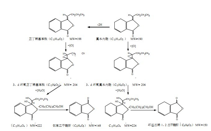 藁本内酯在纯品状态下室温极不稳定,它可发生脱氢、氧化、水解、降解等异构化反应,邻苯二甲酸酐、环已二烯1,2二甲酸酐、正丁烯基苯酞 、3,d-环氧正烯基苯肽 、3,d-环氧藁本内酯、(Z)-藁本内酯 https://www.ndcenter.com.cn/tongxun/1/liguisheng1.pdf(可参考文献) |