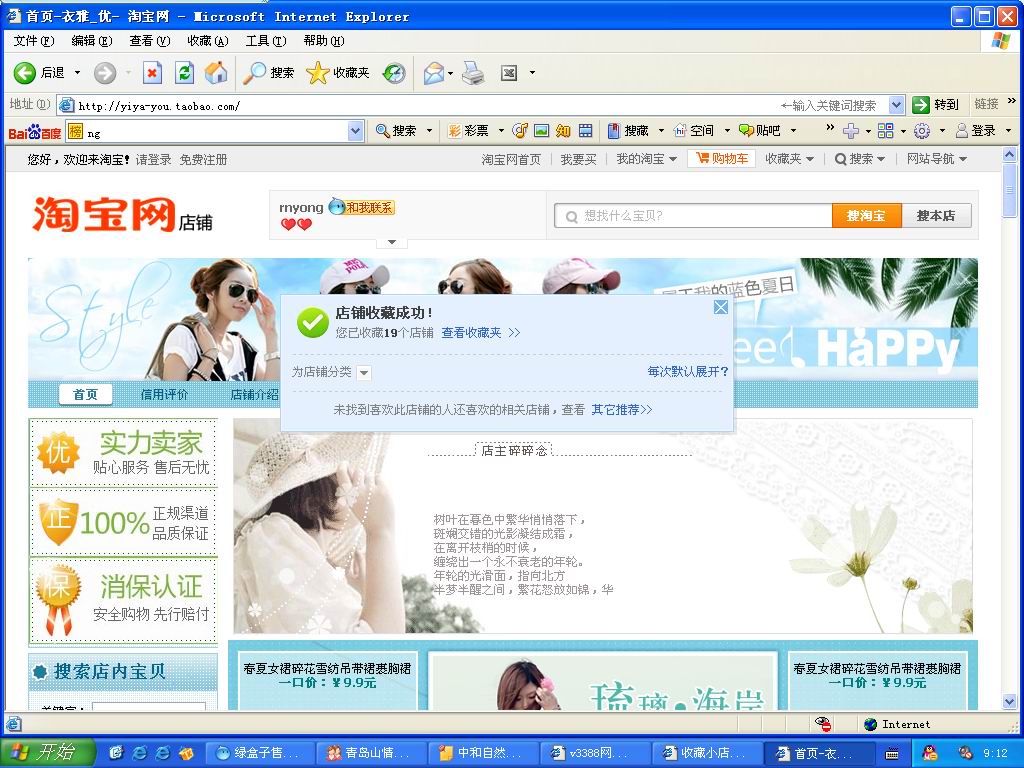 yiya-you.taobao.com    截图为证    本店主要经营女装  各种宝贝都是新上架的    喜欢的留言最低价