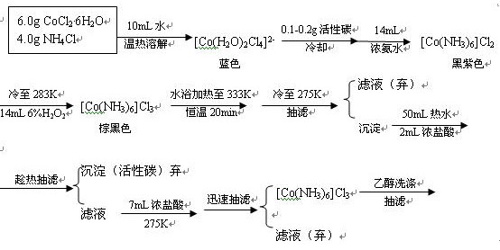 催化剂要用到CoCl3作为助剂,但买到的是CoCl2 ,同学们如何制备Co3+的呢?有没有具体的方案,目前我有个方案,但一些细节不确定,如浓氨水的加入量,还有50ml热水的温度,大家帮我看看这个方案还有什么地方有问题的?
