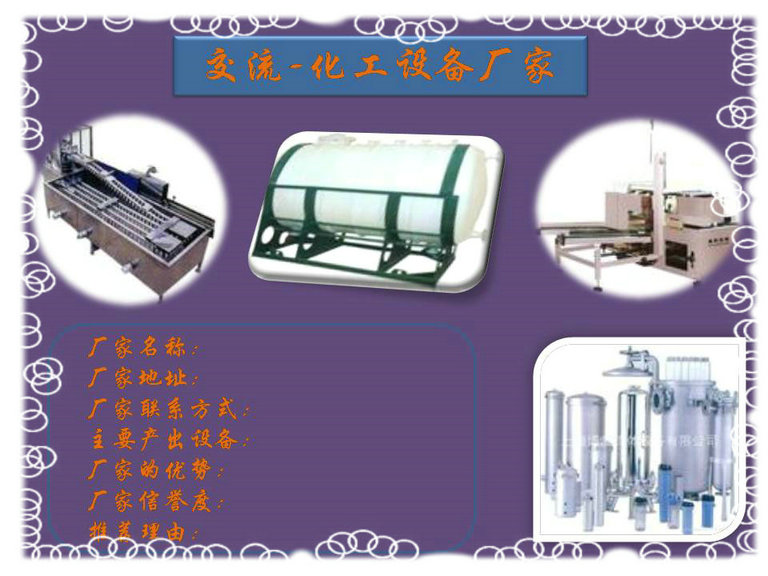 为了方便化工设备版的发展和进步,也为了各位广大购买设备虫友的需要,特发此贴,进行交流。然后回根据交流的结果,进行总结,方面以后各虫友来查阅并参考! 交流内容,如下图所示。欢迎广大虫友积极参与交流啊! [ Last edited by supercooling on 2011-4-29 at 11:16 ] |