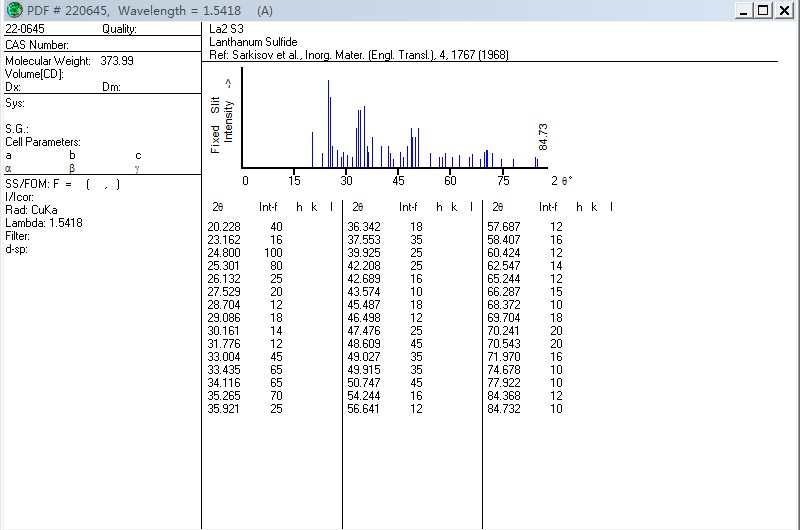 | 请问PDF卡片中的22-0645,其对应的hkl分别是什么啊,我的JADE上没有啊 |