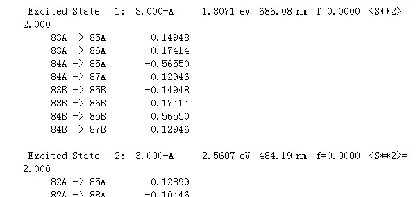[求助]:高斯中的CIS是否能够优化开壳层的激发态结构,例如双重态,四重态的激发态