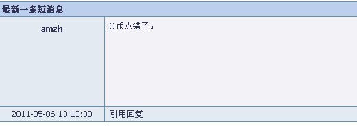liyaoman4(金币-4): 还给你留了5个,也算是补偿吧,O(∩_∩)O~ 2011-05-06 16:19:44