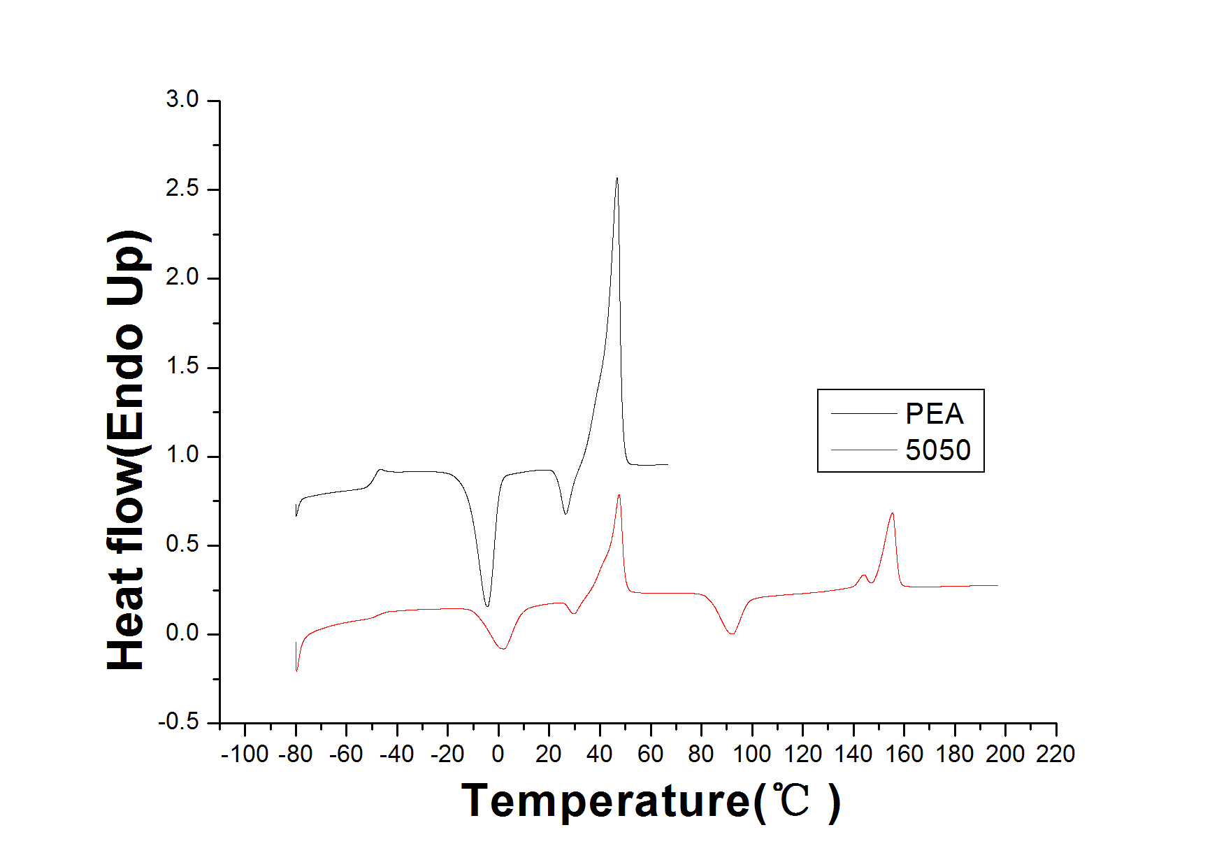| PLLA的Tg为55℃左右,PEA的Tg为-48℃左右,二者共混之后,测了一下DSC想看看二者的相容性,可是不管是什么组分,图像上只能看到-48℃左右(相差不超过2℃)的一个Tg,另外的PLLA的Tg观察不到。若假定完全相容的话,用FOX公式算出的Tg为-6℃左右。很奇怪,求助求助啊~~~~ |