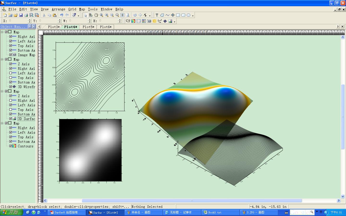 一直以来,我用origin做势能面,比较费劲,需要转化三维矩阵,以及自己调整颜色等![]() 最近接触了一个小软件(真的是小软件哦,安装文件才10多M),叫做surfer8。 ![]() 软件下载地址 http://ishare.iask.sina.com.cn/f ... jA0NjU3MjcwOQ%3D%3D 软件指南下载地址 http://ishare.iask.sina.com.cn/f ... jA0NjU3MjcwOQ%3D%3D 稍微学习了一下,好快捷啊!看来以后做势能面不用费那么大劲儿了 ![]() 于是我用这个小软件做了三个函数的图像 ![]() (1) f(x,y)=exp[-(x^2+y^2)] (2) f(x,y)=exp{-[(x+1)^2+(y+1)^2]}+exp{-[(x-1)^2+(y-1)^2]} (3) f(x,y)=exp[-(x^2+y^2)]+exp{-[(x+1)^2+(y+1)^2]}+exp{-[(x-1)^2+(y-1)^2]}+exp{-[(x+1)^2+(y-1)^2]}+exp{-[(x-1)^2+(y+1)^2]} 依次上图如下 [ Last edited by 鱼妃 on 2011-4-25 at 20:27 ] |