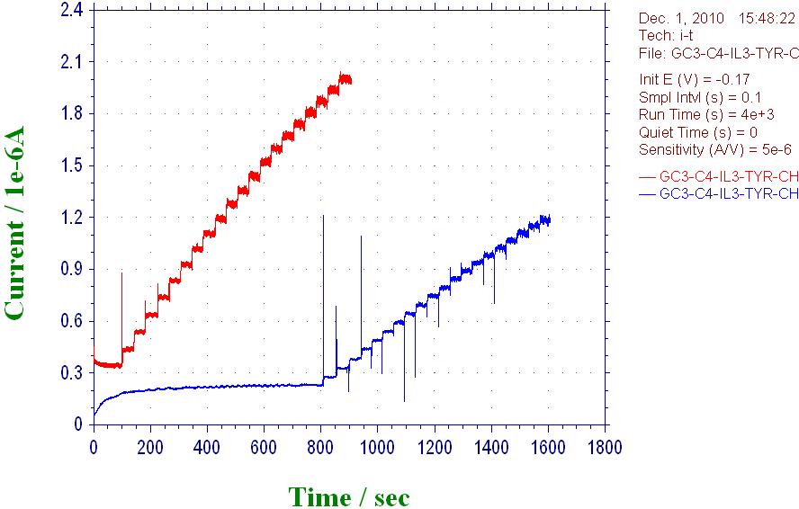 问一下高手电化学I-T曲线的灵敏度如何计算,我看一篇文章上和我做的浓度增加量一样,我的电流增加量比他大,他去给出了一个比我大的灵敏度!灵敏度不是浓度和电流的曲线的斜率嘛?问高手