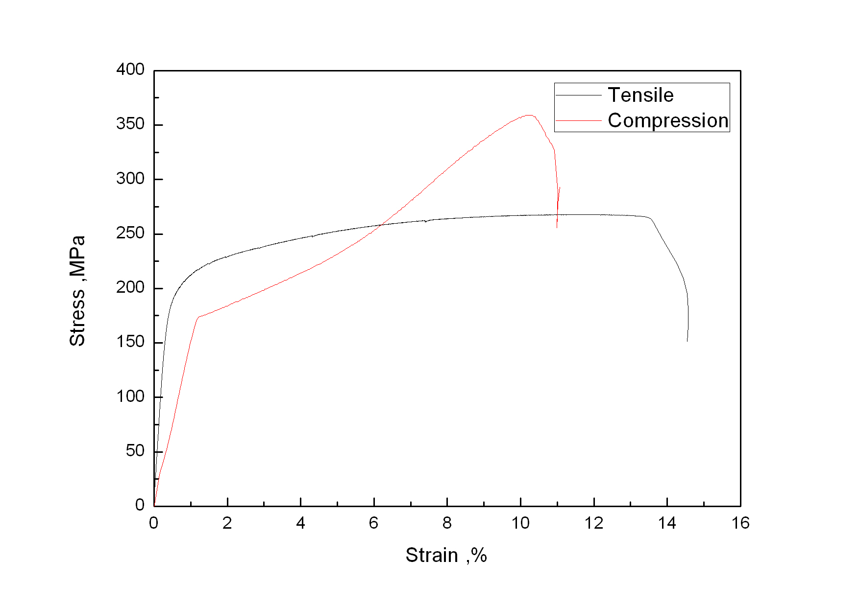 | Compressive modulus theoretically equals to Young's Modulus determined from tensile experiments. The difference between both modulus is not related to material symmetry conditions, but with material behaviour. For instance, a unidirectional composite has different modulus when the fibre is oriented at 0º, but tensile and compressive modulus are the same when the fibre is oriented at 90º。 |