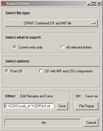 如图,然后选择current entry only,然后按你的需要选择pure cif 还是 要MIF和CSD。下面的是选择路径,保存