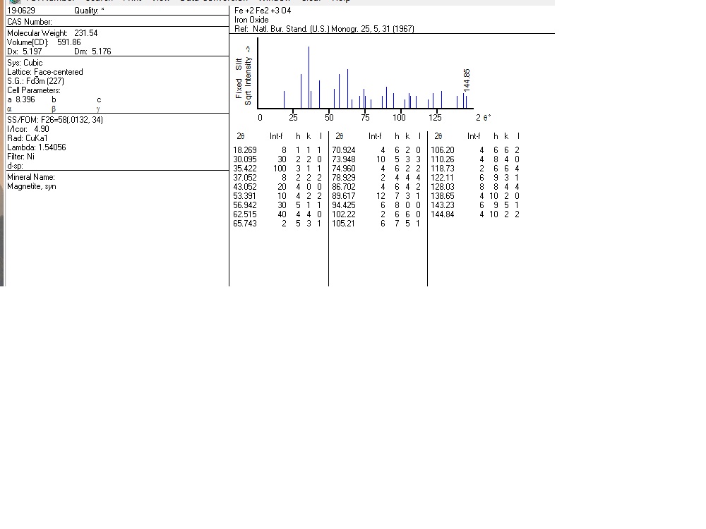 急求纳米四氧化三铁的标准XRD 卡:JCPDS Card: 19-629