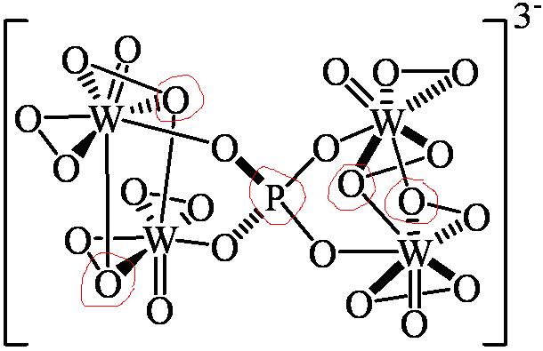 Ishii-Venturello 催化剂中红色标记的四个氧原子怎么是三价的?还有磷原子的怎么是四价的?整个结构为什么是负三价?欢迎这方面的专家交流。 [ Last edited by by-air on 2011-4-28 at 11:05 ] |