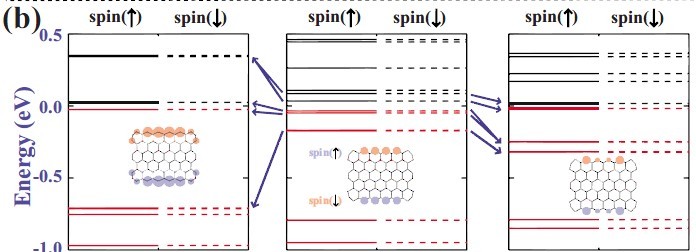 但是看中间的那幅图,是未掺杂石墨烯的能级图,此时能带结构是应该价带顶和导带底在费米能级相交,但是这个图上费米能附近对应的两个轨道能级还是有一定距离的。