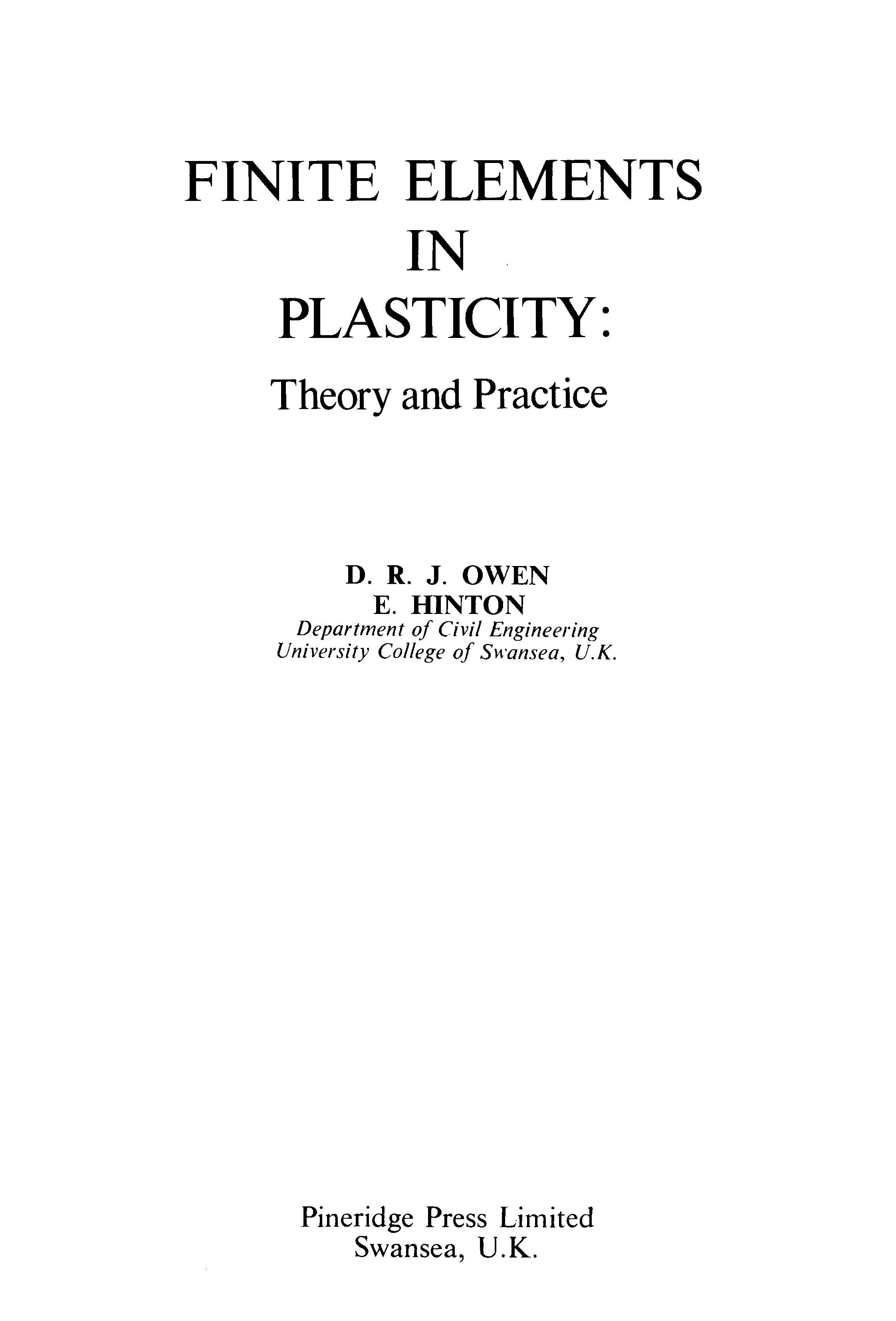 《finite elements in plasticity:theory and practice 》 by Owen, D. R. J. and Hinton, E. Pineridge Press, Swansea, 1980, 594 pp. Language: English ISBN 0-906674-05-2 |
